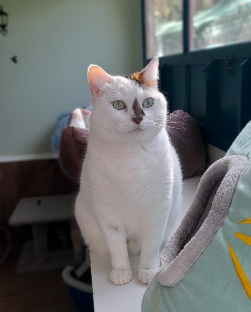 Avec les humains, elle est très câline mais elle a ses humeurs et quand elle ne veut pas, elle sait se faire comprendre. On évitera donc une famille avec des enfants trop jeunes : il faudra savoir respecter sa tranquillité. Elle pourra cohabiter avec d’autres chats ou même des chiens mais il ne faudra pas forcément chercher une relation fusionnelle entre eux; elle les tolérera mais ne recherchera sans doute pas leur compagnie. Un familier des chats qui saurait apprécier son côté diva et ne pas chercher à la forcer serait sans doute plus adapté. Elle est cependant très avenante et recherche la compagnie.