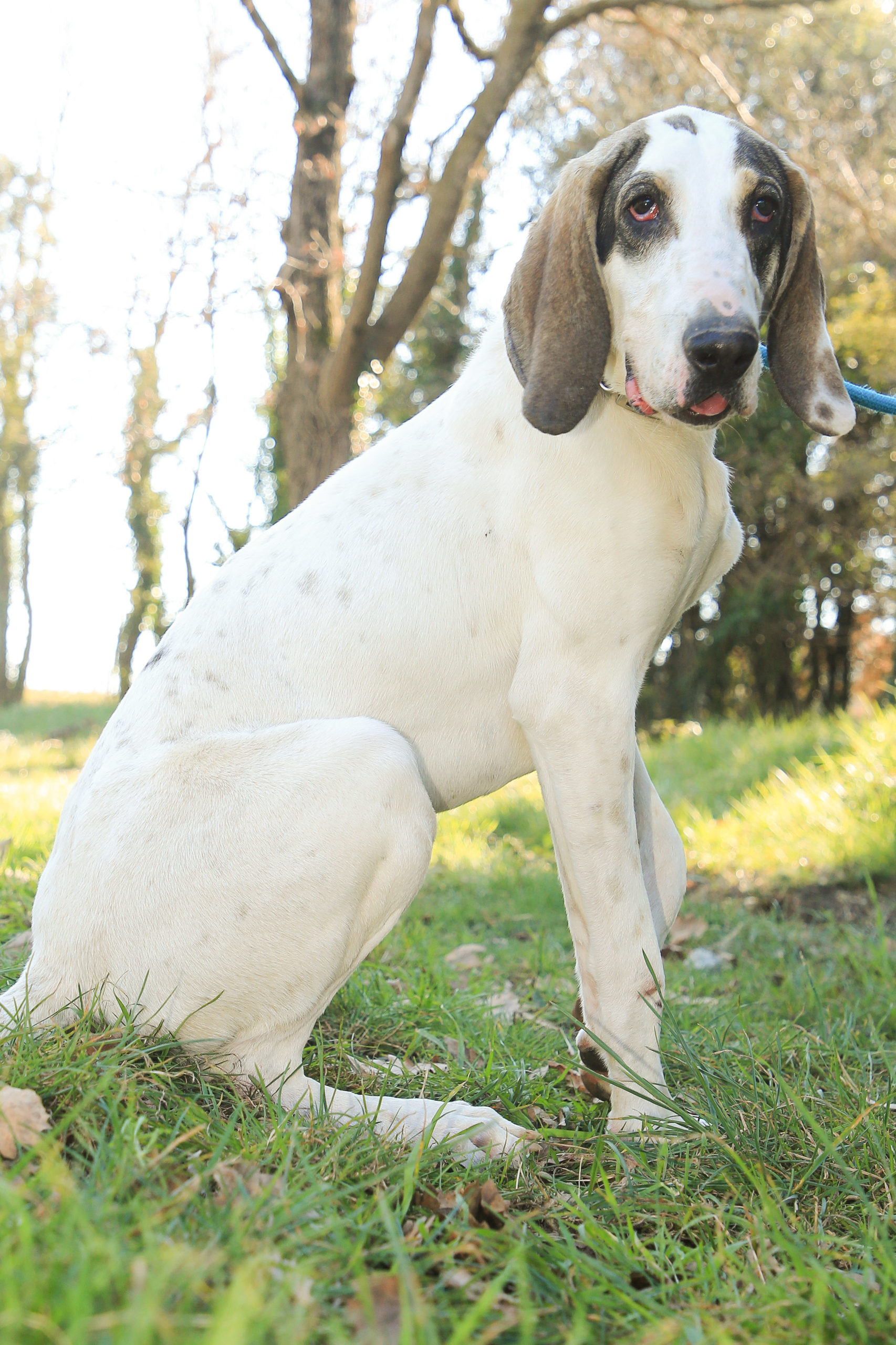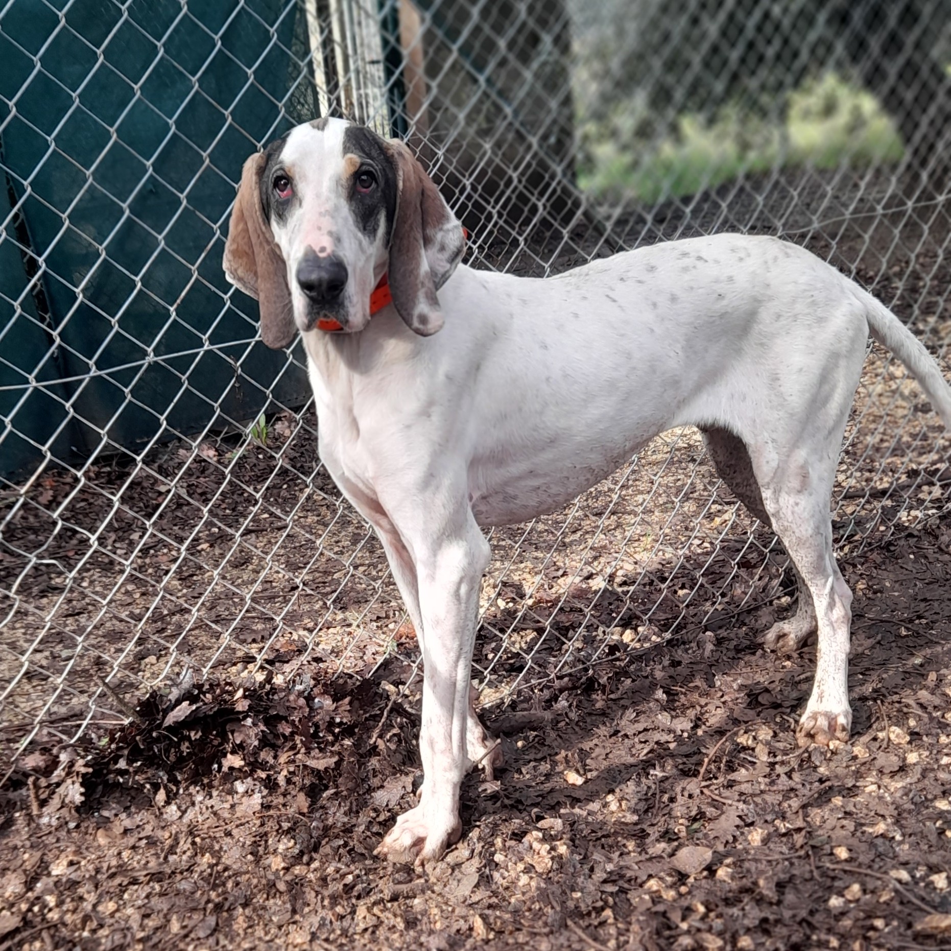 Caractéristiques – Wonka est arrivé chiot chez nous. C’est un garnement d’adolescent, avec un fond joyeux et joueur, curieux de tout, avide de tout découvrir, de tout sentir, de tout goûter. Il a été élevé avec sa famille humaine et canine ce qui en fait un loustic équilibré et attachant. Son affection n’a pas de bornes, elle déborde un peu, même ! Il sera capital de s’investir dans son éducation (il connaît « assis » mais c’est à peu près tout), ce qui requiert du temps, de la patience, de la ténacité parfois aussi. C’est un grand chien, solide et puissant, avec un belle voix! Il s’entend très bien avec les autres chiens mais il peut être envahissant : il lui faut donc un compagnon de caractère qui sache le repousser quand il en fait trop et il peut être lourdaud parfois! Il a côtoyé des chats dans son tout jeune âge : il devrait donc pouvoir cohabiter avec un matou mais ce sera à confirmer car son énergie peut rebuter. Vu la carrure de ce loustic, un grand jardin clos est obligatoire. Wonka devra être un chien de famille, non un chien de chenil, malgré son profil de chasseur et nous ne connaissons pas du tout ses aptitudes en la matière. Il adorera sans doute les enfants car c’est un grand tendre. Ce grand escogriffe sera le rayon de soleil de votre maison !