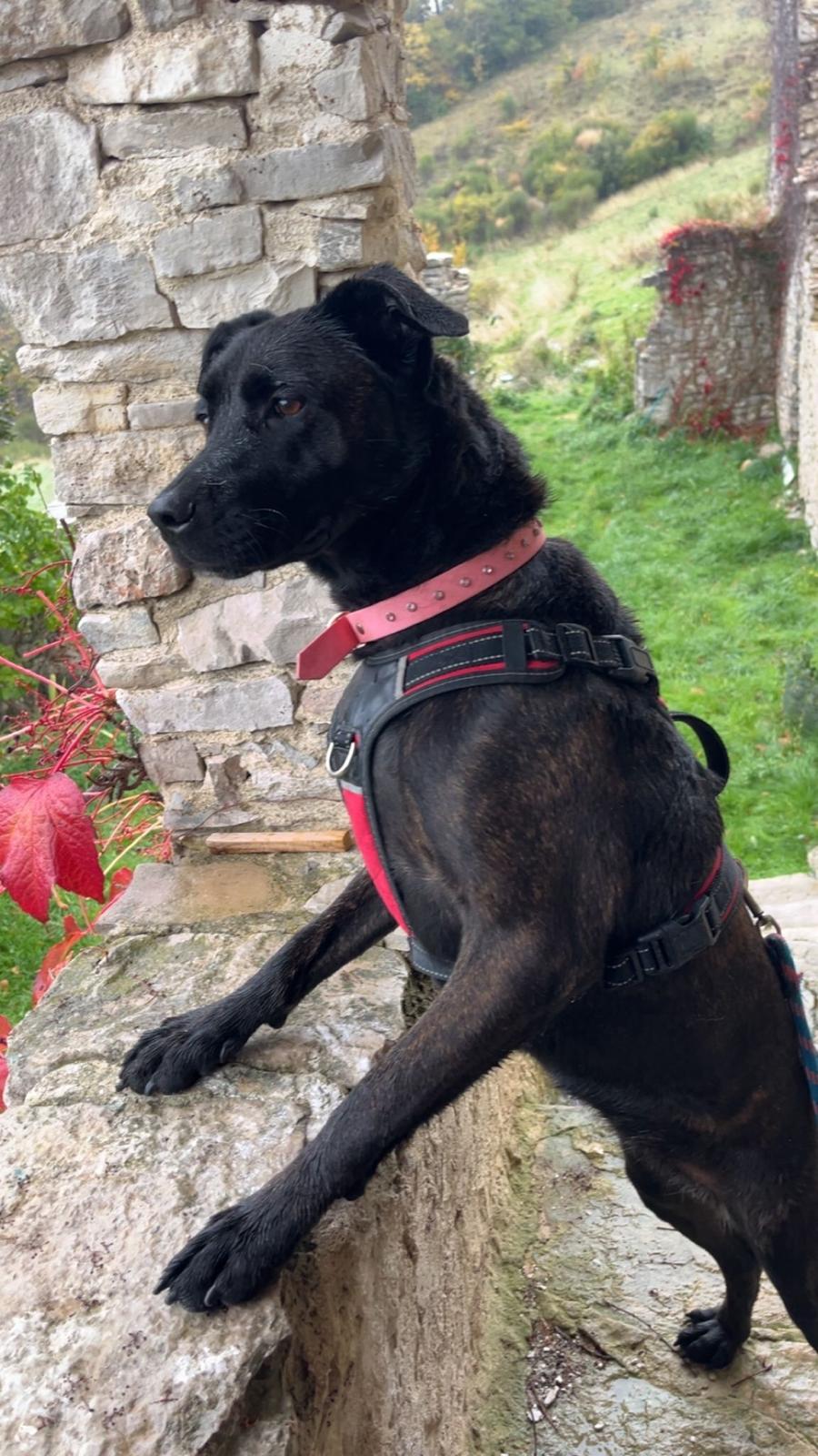 Caractéristiques : Laïka a été abandonnée avec sa sœur, Alpha. Toutes deux sont très fusionnelles et s’entendent très bien. Mais Laïka a besoin d’une vie de famille. Nous avons dû les séparer pour maximiser leurs chances d’être adoptées et elles ont plutôt bien vécu leur séparation. Avec ses congénères, Laïka frime et essaie d’en imposer mais elle est sociable en réalité: elle manque juste d’habitude. A l’heure actuelle, elle cohabite avec un autre chien et ce n’est pas lui qui porte la culotte. Elle est très joueuse et un autre chien de son gabarit et bien dans ses pattes ferait son bonheur. Elle semble très délurée dans son parc et la sortie est sportive mais une fois en promenade, elle est assez sage et a un bon rappel. Elle a besoin toutefois d’autorité pour canaliser son énergie. Avec les humains, elle est adorable mais brusque : elle saute mais c’est surtout pour réclamer de l’attention, des caresses. Cependant, elle apprend très vite : assis, couché, il lui a fallu quelques minutes. C’est une chienne intelligente qui se dévouera corps et âme à celui qui l’adoptera car elle est très demandeuse d’interactions. Il faudra donc approfondir son éducation et lui donner de l’occupation autant que de l’affection.