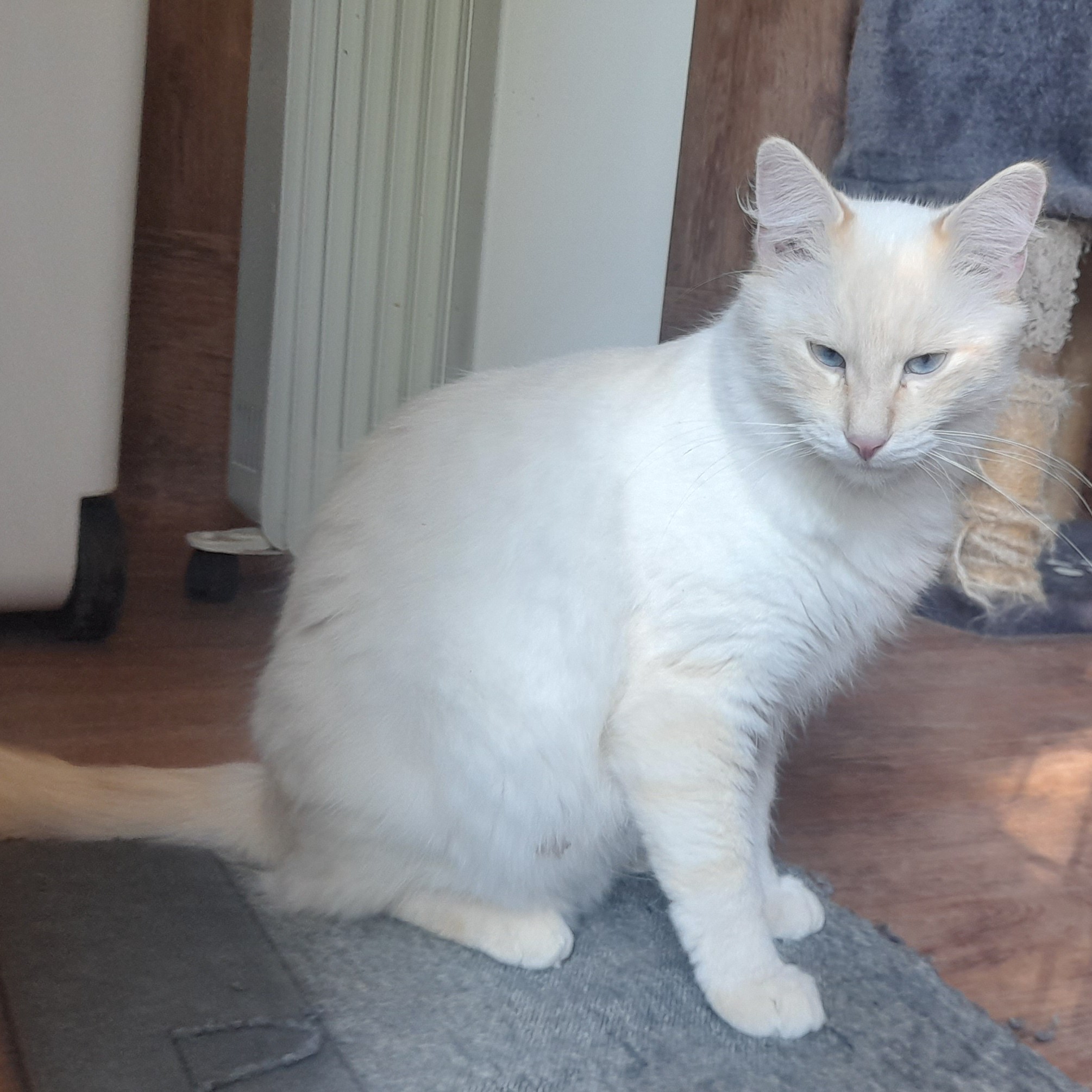 Azkaban a été « oublié » dehors lors du déménagement avec son frère Alcatraz. Leur propriétaire, avertie, n’est jamais venue les récupérer. C’est un jeune chat hyper câlin et adaptable. S’il a été perturbé quelques jours à son arrivée, il a vite pris ses marques et il commence à révéler un caractère facile et attachant. Il s’entend avec les autres chats mais on ne sait pas s’il pourrait tolérer la présence d’un chien. Il lui faudra un petit accès à l’extérieur il apprécie de s’aérer le coussinet dans un jardin.