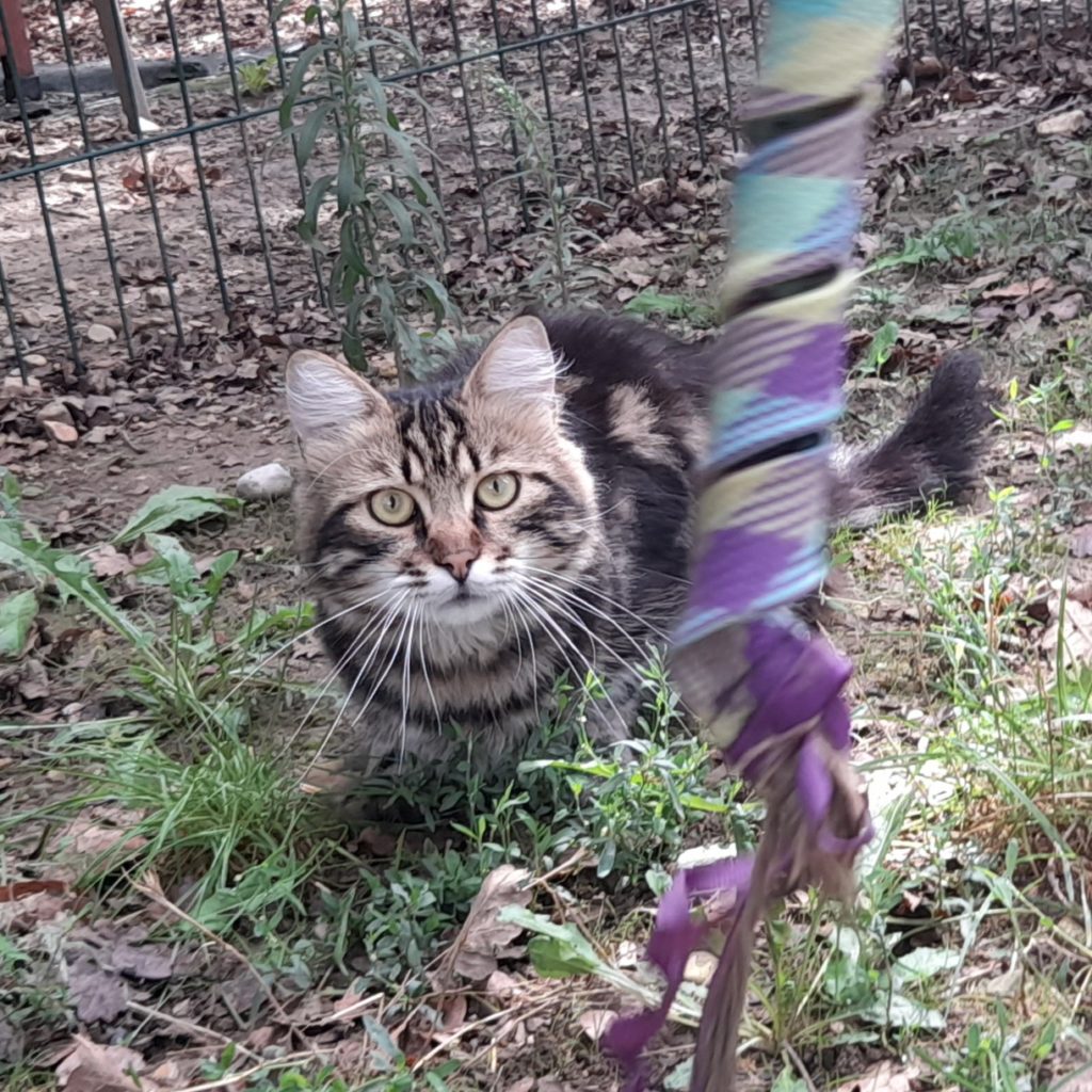 Il fréquente pacifiquement ses congénères même s’il peut jouer de façon un peu virile. Il n’a pas peur des chiens et sait les tenir en respect sans se départir de son flegme félin. C’est un personnage ! Pour l’instant, il n’aime pas trop être porté mais des câlins sur la terre ferme, là, pas de souci. Il appréciera un jardin où prendre le soleil. Roméo serait un candidat parfait pour une famille n’ayant jamais eu de chat.