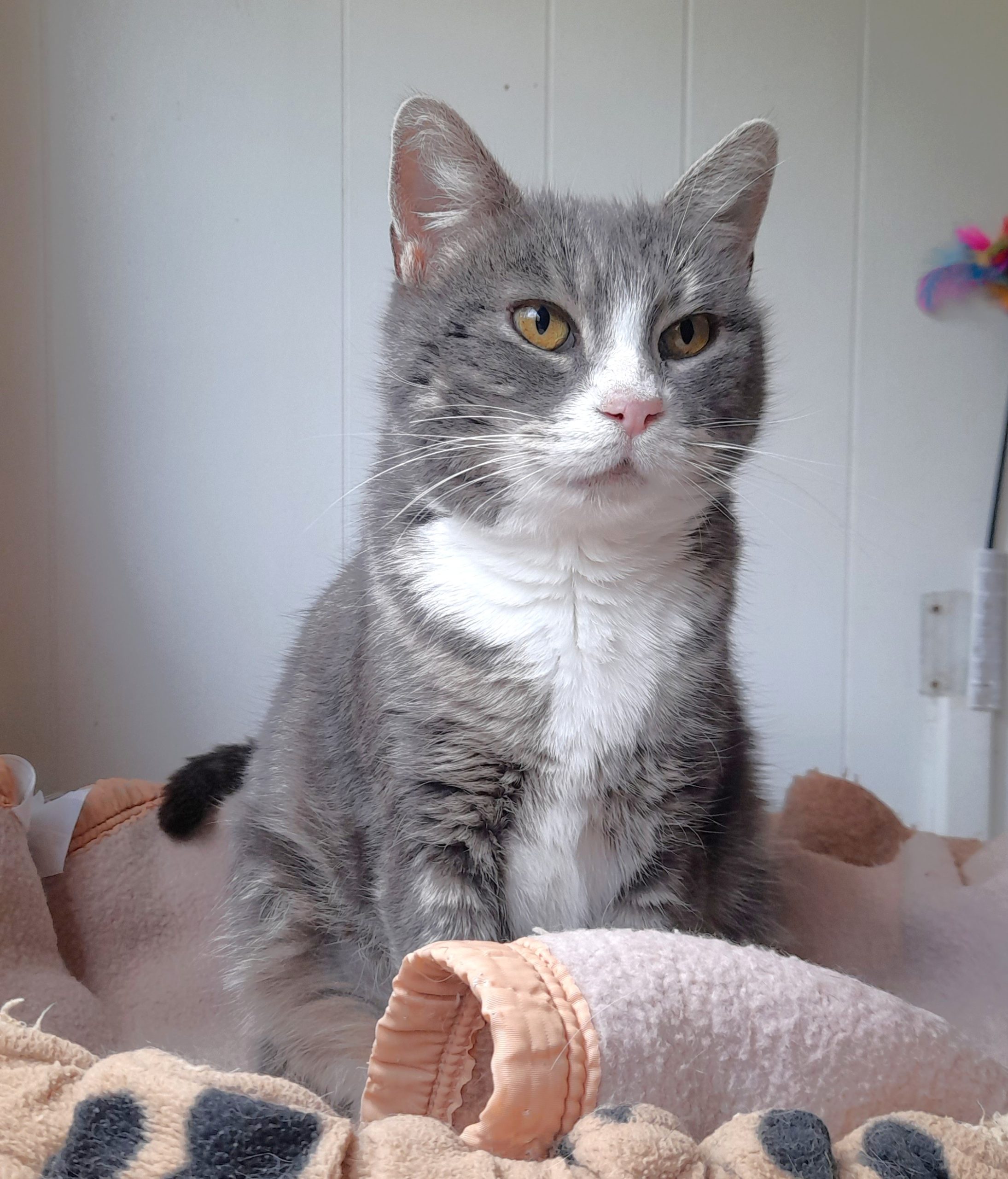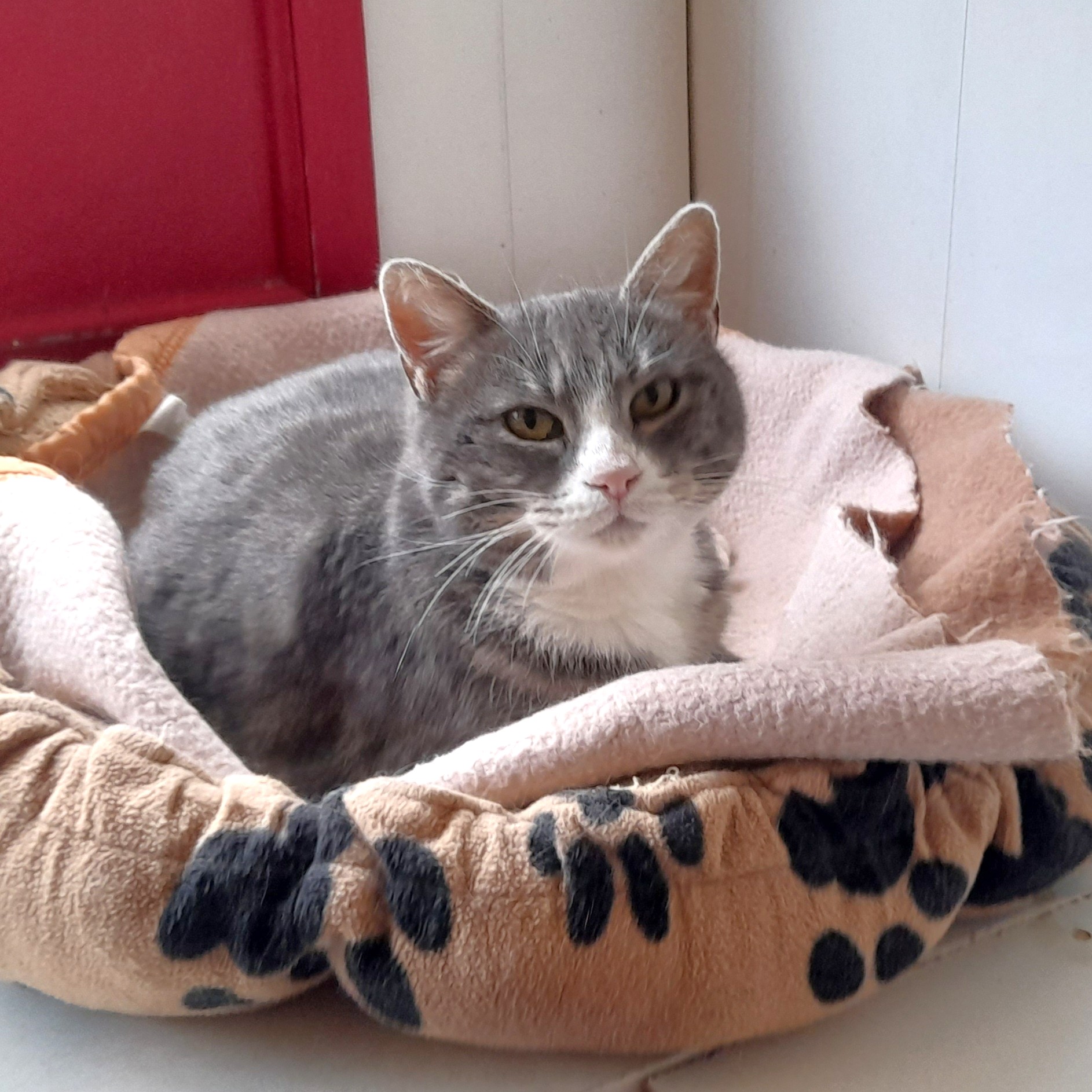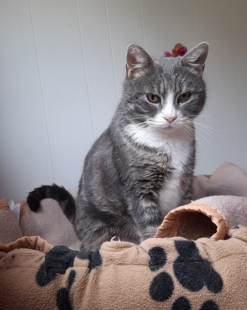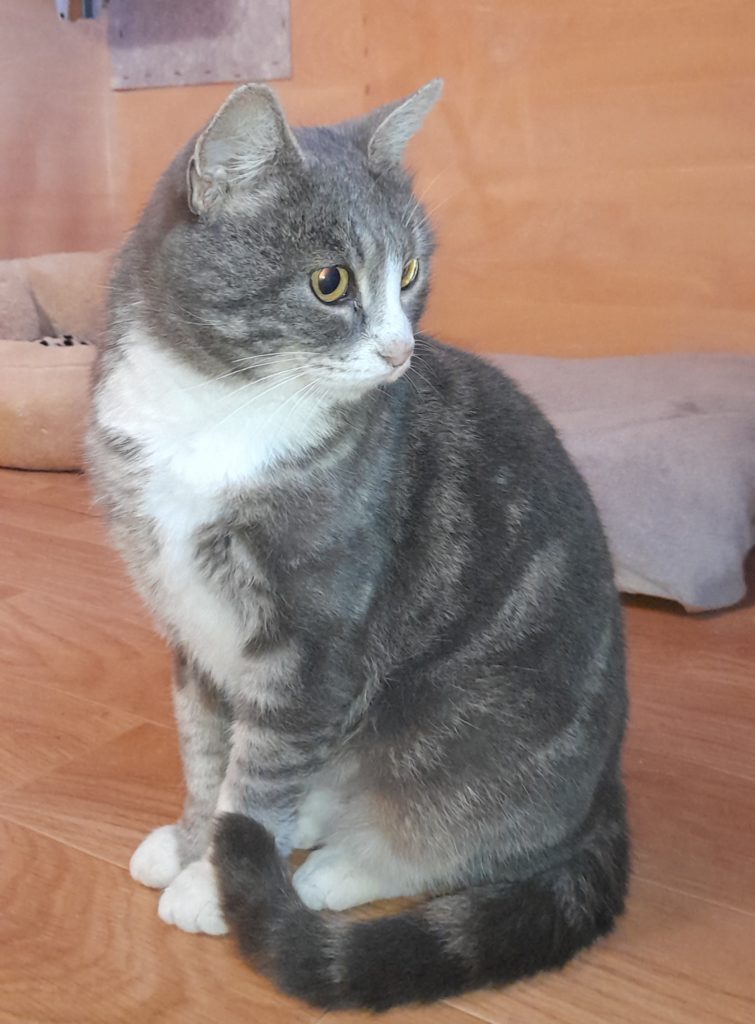 Il est possible de lui donner ses médicaments par inhalations mais ce système réclame tout un apprentissage pour qu’elle accepte le masque et nous ne disposons pas du temps nécessaire pour cela. Elle est donc sous médicaments, à vie. C’est pourquoi nous cherchons une famille d’accueil pour cette minette si gentille, caressante et tranquille, qui pourrait lui apprendre à tolérer ce masque ou, si elle reste récalcitrante comme elle l’est au refuge, qui serait capable de comprendre que certes son traitement est impératif pour la soulager mais qu’il réduira aussi son espérance de vie. C’est un vrai dilemme mais nous préférons privilégier sa qualité de vie à sa durée. Laly prend facilement ses cachets, ne demande pas grand chose : un coussin au chaud, des câlins et de la tranquillité. Elle est sociable avec les autres chats. Si vous pensez réunir ces qualités de patience, de dévouement à un animal fragile qui vous quittera peut-être plus vite qu’un autre mais qui vivra d’autant plus intensément son bonheur auprès de vous, si vous êtes cette perle rare, merci de nous contacter. Laly est proposée à l’adoption pleine et entière ou en famille d’accueil (la SPA prendra en charge les soins médicaux sous réserve que les soins soient pratiqués dans notre clinique vétérinaire.)